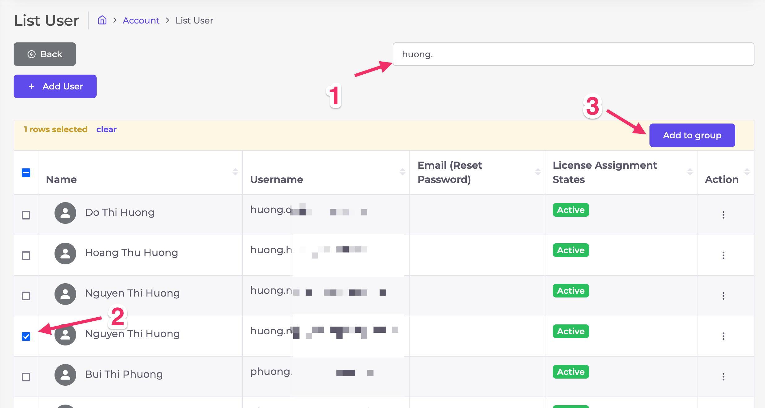 - Chọn User (hoặc nhiều User) cần thêm vào Group
