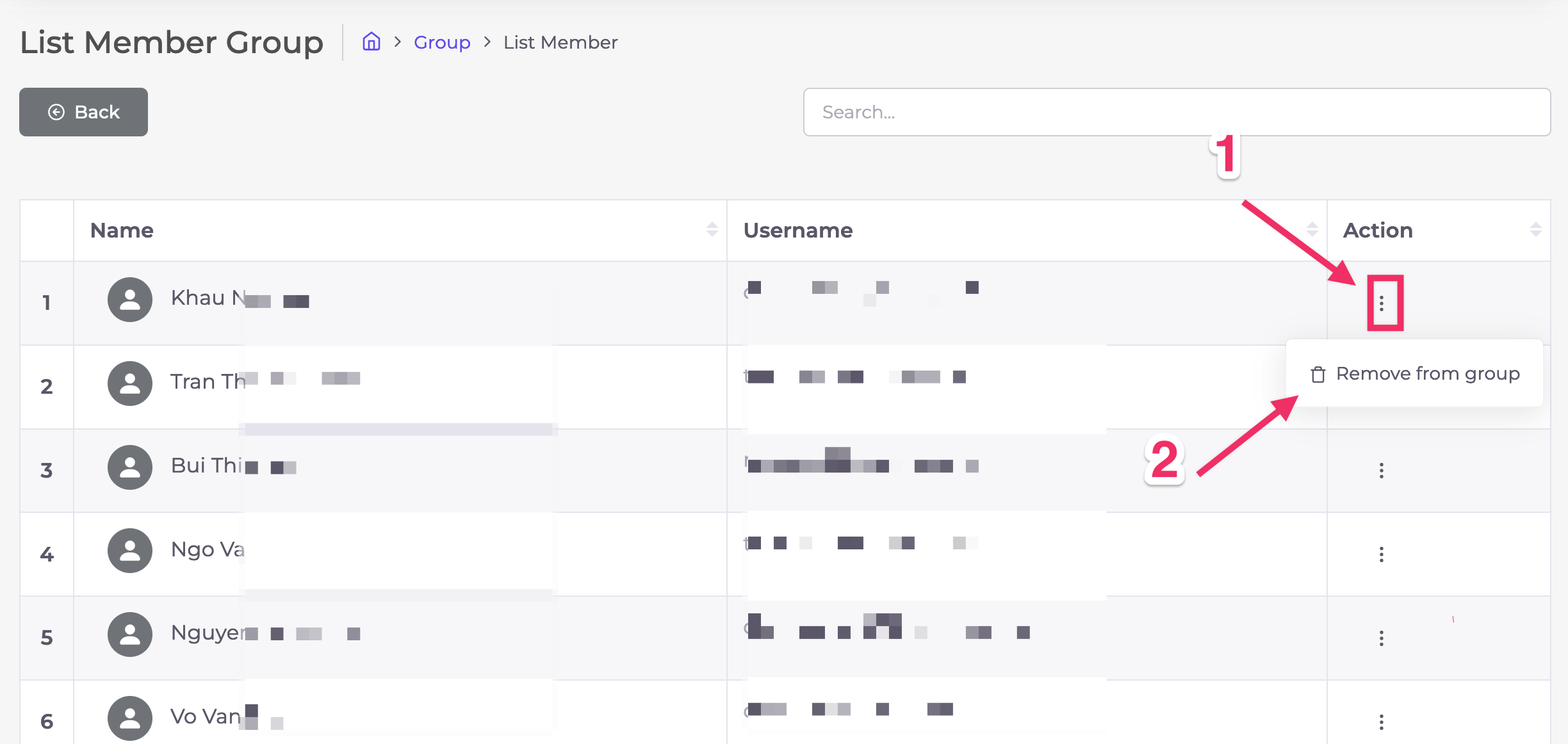 Bạn click vào Group mà User đó đang tồn tại, tiếp đến bạn thao tác như hình.